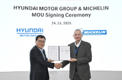 【 청년일보 】 현대자동차·기아가 글로벌 타이어 제조 업체인 '미쉐린'과 손잡고 주행 퍼포먼스를 높이는 타이어 개발에 나선다. 현대차·기아는 전날 남양연구소(경기도 화성시 소재)에서 현대차·기아 제네시스설계센터장 신용석 상무, 미쉐린 조지레비 아시아퍼시픽 OE 총괄 부사장 등이 참석한 가운데 기술 공동개발 업무협약식을 갖고, 차세대 모빌리티를 위한 타이어 기술 리더십 확보에 나선다고 25일 밝혔다. 이번 협약은 성공적으로 마무리된 지난 1, 2차 공동연구에 이어 체결되는 3차 협약이다. 양측은 지난 2017년과 2022년 타이어 기술 고도화를 위한 공동연구를 추진한 바 있다. 3차 협약에 따라 양측은 내년부터 3년간 ▲타이어 성능 향상 연구 ▲가상 시뮬레이션 기술 개발 ▲상호 기술 역량 교류를 집중적으로 이어갈 예정이다. 우선 타이어 성능 향상 부문에서는 초저회전저항 타이어, 스마트 그립 기술을 활용한 차량 제어 등 차량의 주행 퍼포먼스를 높이는 타이어 첨단 기술에 대한 공동연구를 진행한다. 특히 차량의 고속주행 안정성을 확보하기 위한 한계 핸들링 및 제동 성능 강화에 대한 연구가 집중적으로 이뤄질 전망이다. 가상 시뮬레이션 기술 부문에서는 오프로드 타이어