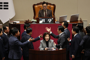 【 청년일보 】 올해 정기국회 마지막 날인 9일 본회의는 국민의힘 나경원 의원이 필리버스터(무제한 토론을 통한 합법적인 의사진행 방해)에 나선 지 13분 만에 우원식 국회의장이 마이크를 끄면서 고성과 항의, 막말로 아수라장이 됐다. 【 청년일보=안정훈 기자 】