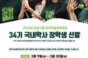 【 청년일보 】 태광그룹 일주학술문화재단(이하 일주재단)은 미래 인재를 양성하기 위해 2026학년도 34기 국내학사 장학생을 선발한다고 9일 밝혔다. 지원 자격은 국내 4년제 대학교 2학년 1학기에 재학 중인 대학생으로 평점 3.0 이상(4.5점 만점 기준)의 성적이면 전공에 관계없이 누구나 신청이 가능하다. 장학생은 인문사회, 자연공학, 예체능 등 계열별로 심사∙선발하며, 올해는 음악·미술·체육 계열 선발인원을 확대할 계획이다. 총 선발 인원은 60명 내외이며, 선발된 장학생에게는 최대 5학기 동안 학기당 400만원의 생활비 장학금을 지원한다. 특히 올해부터는 학생들이 경제적 부담을 덜고 학업과 진로 탐색에 더욱 집중할 수 있도록 지원 방식을 생활비 장학금 형태로 개편한다. 지원 기간은 오는 3월 30일까지며, 일주재단 홈페이지를 통해 온라인 접수하면 된다. 선발 전형은 서류심사와 면접심사로 이뤄지며 지원 동기, 인성, 역량 및 비전 등을 종합적으로 평가한다. 장학생들에게는 장학금과 함께 '장학생 여름캠프', '국내학사 동문모임', '장학생 소모임', '기자단 활동' 등 재학생과 졸업생 간 소통을 위한 교류 모임에 참여할 수 있는 기회가 제공된다. 또 그룹