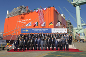 【 청년일보 】 삼성중공업은 16일 거제조선소에서 이탈리아 국영 에너지 기업인 ENI가 발주한 부유식 LNG 생산설비(FLNG) '코랄 노르트(Coral Norte)'의 진수식을 개최했다고 밝혔다. 이날 진수식에는 최성안 삼성중공업 대표이사 부회장을 비롯해 에스테바오 팔레(Estevao Pale) 모잠비크 광물자원 및 에너지부 장관, 귀도 브루스코(Guido Brusco) ENI COO, 야마다 쇼지(Yamada Shoji) JGC 대표 등 관계자 80여명이 참석했다. 코랄 노르트는 앞서 삼성중공업이 2017년 ENI로부터 수주해 2021년 인도한 아프리카 최초의 극심해 FLNG '코랄 술(Coral Sul)'에 이어 건조하는 2번째 초대형 FLNG다. 선체 길이 432m, 너비 66m 크기로 축구장 4개를 직렬로 배열할 수 있는 규모다. 진수 중량만 12만3000톤에 달한다. 삼성중공업과 ENI는 지난해 7월 8천694억원 규모의 본 공사 예비 작업 협약을 체결하고 공정을 진행해왔으며 2028년 완공을 목표로 하고 있다. 삼성중공업은 현재까지 전세계에서 발주된 신규 건조 FLNG 10기 중 6기를 수주했다. 세계 최대 FLNG인 쉘(Shell)의 '프렐류드