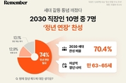【 청년일보 】 19일 비즈니스 네트워크 서비스 리멤버를 운영하는 리멤버앤컴퍼니는 20·30대 직장인 1천37명을 대상으로 진행하는 '정년 연장 인식 조사' 결과 응답자의 10명 중 7명꼴인 74%가 정년 연장이 필요하다고 응답했다고 밝혔다. 60대(80.8%)와 50대(77.9%)에서 정년 연장 찬성률이 높았는데 20대(67.9%)와 30대(70.4%)에서도 높은 찬성률이 나타났다. 이상적인 정년을 묻는 문항에서도 전체 응답자의 60.2%가 만 63∼65세를 적절한 정년으로 꼽았다. 이렇듯 직장인이 정년 연장을 원하는 가장 큰 이유는 경제적 불안감 때문이었다. 응답자의 39%는 노후 생활 안정 때문에, 17.8%는 국민연금 수급까지의 소득 공백 때문에 정년 연장을 원하는 것으로 집계됐다. 다만 정년 연장의 실행 방법에 대해서는 세대별로 의견이 엇갈렸다. 20대 응답자의 28.6%는 성과나 직무 중심의 임금 체계 개편을 선결 과제로 꼽았지만, 40대와 50대 응답자의 27%는 고령 인력의 생산성 유지를 위한 재교육을 1순위 과제로 골랐다. 주대웅 리멤버 리서치사업실장은 "정년 연장 논의의 초점은 세대 갈등이 아니라 기존의 인사 시스템을 어떻게 근본적으로 개편