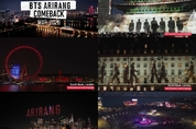 【 청년일보 】 방탄소년단(BTS)의 컴백을 기념하는 대형 프로젝트가 서울을 비롯해 뉴욕과 런던 등 세계 주요 도시를 잇는 글로벌 축제로 확산되었다고 소속사 빅히트 뮤직이 26일 밝혔다. 이번 프로젝트는 새 앨범 '아리랑'(ARIRANG) 발매에 맞춰 전 세계 주요 거점을 하나의 몰입형 미디어 공간으로 확장한 것이 특징이다. 미국 뉴욕에서는 지난 18일(이하 현지시간) 맨해튼 스카이라인을 배경으로 대규모 드론 쇼가 펼쳐져 앨범명과 숫자 '7' 등을 형상화했다. 영국 런던에서는 21일 런던 아이가 붉은 조명으로 점등되었으며, 사우스 뱅크 일대 건물 외벽에는 청사초롱을 든 멤버들의 모습이 담긴 미디어 파사드가 연출되었다. 국내에서도 다채로운 연출이 이어졌다. 컴백 당일인 지난 20일 서울 숭례문 성벽에는 멤버들의 실루엣을 구현한 미디어 파사드가 상영되어 전통 문화유산과 현대 기술의 결합이라는 평가를 받았다. 또한 신세계스퀘어의 3D 비주얼 콘텐츠와 남산타워의 앨범 로고 표출, 뚝섬 한강공원의 드론 쇼 등이 시민들의 눈길을 끌었다. 여의도 한강공원에서는 체험형 프로그램과 버스킹 공연이 운영되었으며, 향후 동대문디자인플라자(DDP) '아미마당'과 청계천 '러브쿼터'