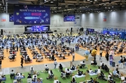 【 청년일보 】 우리은행(은행장 정진완)은 지난 20일 일산 킨텍스에서 제28회 우리은행 미술대회 ‘우리 아트콘(Woori Art Contest)’ 본선대회를 개최했다고 22일 밝혔다. 총 500명의 본선 진출자와 그 가족들이 함께한 이번 대회는 풍성한 체험 프로그램을 갖춘 미술 축제의 장으로 마련됐다. 유치원생부터 고등학생까지 본선에 오른 참가자들은 “상상 한 켠을 가득 채워요”라는 슬로건 아래 자신만의 꿈과 상상을 화폭에 담아냈다. 대회장에서는 참가자들이 가족과 함께 즐길 수 있는 다채로운 부대 프로그램도 운영됐다. 위비프렌즈 캐릭터별 부스에서는 ▲쿠의 키링 공방, ▲봄봄의 스크래치 아트, ▲두지의 캐리커쳐, ▲푸딩의 형광밤하늘, ▲달보의 수제쿠키 등 미술과 연계된 다양한 체험활동이 진행됐다. 특히 이번 대회는 발달장애인의 본선 참여 기회를 확대해 ‘우리’의 의미를 더했다. 이를 통해 우리은행은 이웃에게 ‘우리의 한 켠’을 기꺼이 건넨다는 그룹의 사회공헌 메시지를 담아냈다. 정진완 은행장은 “아이들의 붓질 하나, 색감 하나에 담긴 상상력은 세상을 밝히는 힘이 된다”며 “아이들의 상상력이 모여 세상에 감동을 전하길 기대한다”고 말했다. 본선 참가자 전원에게
