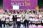【 청년일보 】 2025-2026 V리그 남녀부 정규리그 왕좌의 주인이 가려질 운명의 시간이 다가왔다. 한국배구연맹(KOVO)은 정규리그 1위 확정 가능성이 커짐에 따라 조원태 총재가 직접 현장을 찾는 등 본격적인 시상 준비에 돌입했다. 여자부에서는 한국도로공사가 가장 먼저 샴페인을 터뜨릴 기회를 잡았다. 도로공사는 13일 오후 7시 인천 삼산월드체육관에서 흥국생명을 상대한다. 현재 승점 66(23승 11패)으로 2위 현대건설(승점 65)에 간발의 차로 앞서 있는 도로공사는 이날 경기에서 승리할 경우, 남은 한 경기 결과와 상관없이 정규리그 1위를 확정 짓고 챔피언결정전으로 직행한다. 현장에는 조원태 총재와 신무철 사무총장이 방문해 우승 트로피와 상금 1억 원을 전달할 예정이다. 만약 도로공사가 이날 흥국생명에 덜미를 잡힌다면, 1위의 향방은 도로공사의 최종전(17일)과 현대건설의 마지막 경기(18일) 결과에 따라 결정되는 ‘안갯속 국면’으로 접어들게 된다. 남자부 역시 '디펜딩 챔피언' 대한항공의 독주 체제가 굳어지는 모양새다. 승점 69를 기록 중인 대한항공은 2위 현대캐피탈(승점 66)을 승점 3점 차로 따돌리고 있다. 대한항공은 오는 15일 부산 강서