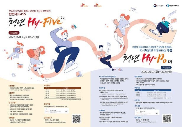 SK하이닉스는 인재 채용이 필요한 우수 협력사와 취업준비생을 연결해주는 ‘청년 Hy-Five’ 7기 참가자를 모집한다고 13일 밝혔다. 또한, 대학생 대상으로 직무교육 기회를 제공하는 ‘청년 Hy-Po’를 올해 처음으로 시행한다. 둘 다 반도체 인재를 육성하고 국내 반도체 생태계의 경쟁력을 강화하는 등 사회적 가치를 창출하기 위해 만들어진 프로그램이다.