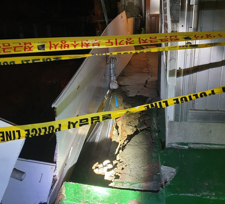 【 청년일보=김원빈 기자 】 경기 부천시 신축 아파트 공사장 인근 다세대 주택에서 담장과 외부 통로 바닥이 붕괴했다.