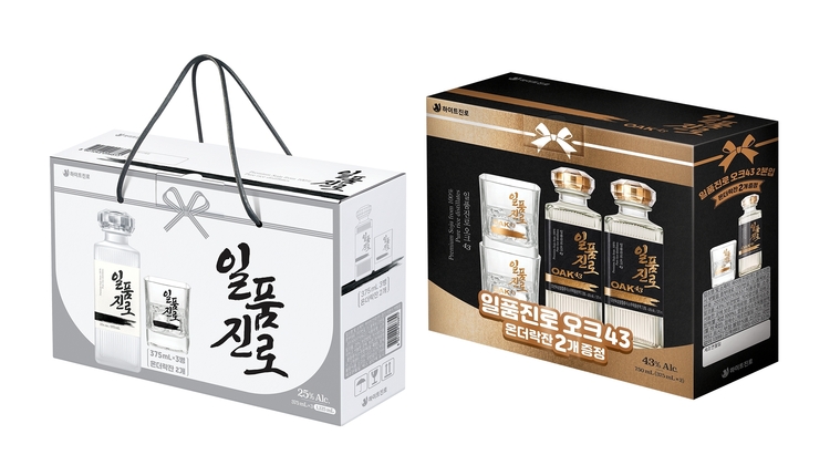 일품진로 선물세트는 375ml 3병과 온더락잔 2개로 구성했다. 일품진로는 중간 원액만 사용, 영하의 온도에서 잡미, 불순물을 걸러내는 냉동여과공법 후에 숙성 기간을 거친다.
