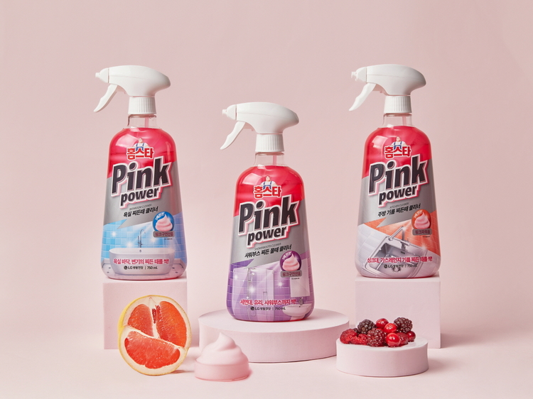 ‘핑크파워 욕실 찌든때 클리너’는 찌든 때 세정 및 제거 전용 세정제다. 욕실 바닥부터 벽, 변기와 하얀 석회 때가 낀 부분까지 청소할 수 있다.