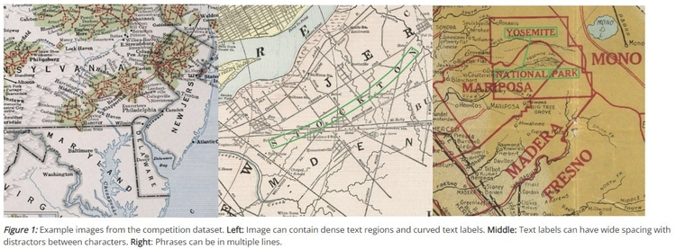 이 부문은 과거에 만들어진 지도 이미지 속의 복잡한 레이아웃으로 구성된 텍스트를 검출하는 고난도 과제로 구성돼 있다.