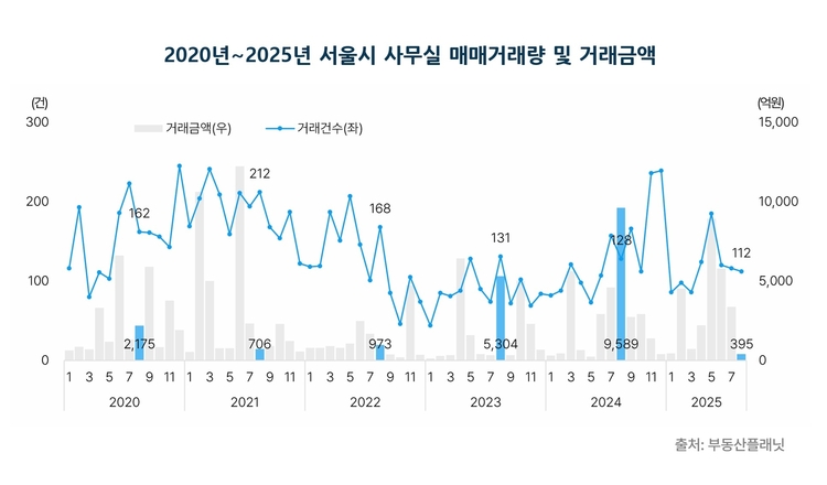 ![2020년~2025년 서울시 사무실 매매거래량 및 거래금액. [사진=부동산플래닛]](http://www.youthdaily.co.kr/data/photos/20251042/art_17604005272599_45b092.jpg)