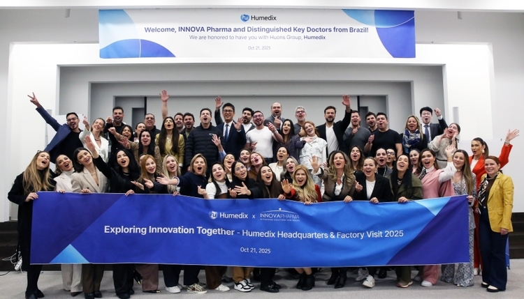 휴메딕스는 지난 21일 브라질 유통 협력사인 이노바(INNOVA Pharma) 임직원 및 브라질 현지 핵심 의료진(Key doctor) 등 총 60여 명이 성남 판교 본사와 제천 공장을 방문했다고 22일 밝혔다.