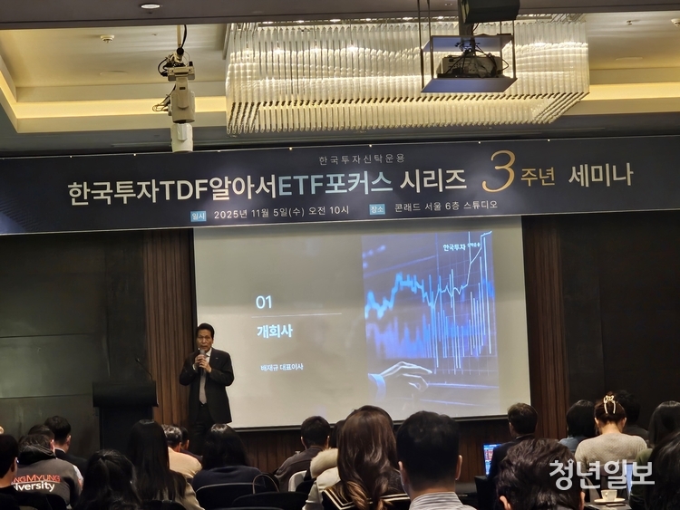 【 청년일보 】 한국투자신탁운용은 자사의 대표 타깃데이트펀드(TDF) 상품인 ‘한국투자TDF알아서ETF포커스펀드’ 출시 3주년을 맞아 퇴직연금 세미나를 개최했다고 5일 밝혔다.