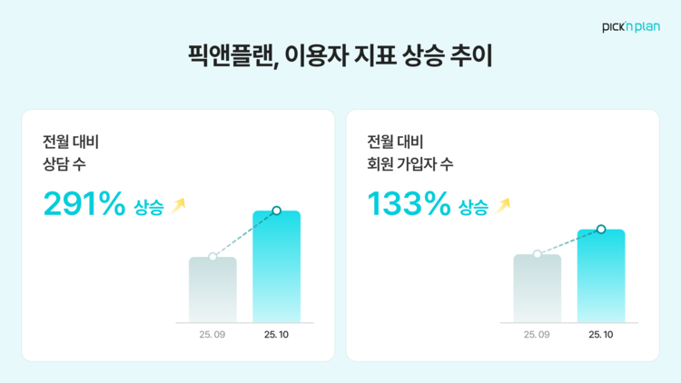 ‘픽앤플랜’은 최근 네이버페이 이벤트, 전화 상담 기능 도입, 장기보험 맞춤 비교 기능 강화 등을 통해 플랫폼 경쟁력 및 편의성을 지속적으로 개선해 나가고 있다. 그 결과 상담 건수 증가와 함께 10월 신규 가입자수 역시 전월 대비 약 130% 증가하며 지난 2023년 서비스 출범 후 최대치를 달성했다.