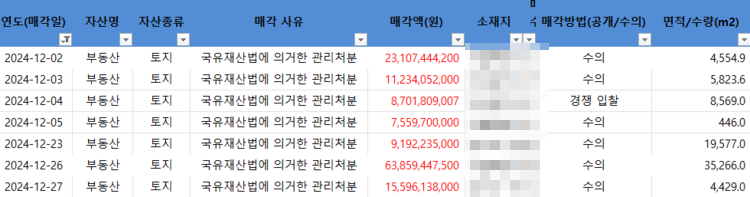 실제 2024년 한 해(10억원 이상 건) 매각된 국유재산 약 2천470억원 가운데 87.7%에 달하는 2천167억원이 12월 한 달에 집중된 것으로 확인됐다.