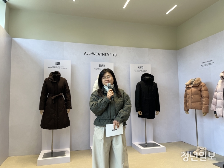 이날 행사에서 김정미 네파 부사장은 '기술 기반의 세련된 디자인으로 아웃도어 프리미엄을 확장한다'는 브랜드 방향성을 발표하며, 변화하는 시장 환경에 대응한 25FW 핵심 전략으로 '스타일 테크 다운(Style Tech Down)'을 제시했다.