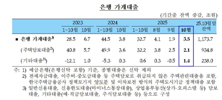 아울러 “11월 가계대출은 9월과 10월 늘어난 주택 거래의 영향으로 주택담보대출 증가 폭이 커질 가능성이 있다”며 “신용대출의 경우 투자 자금 수요를 예단하기 어려워 불확실성이 큰 상황”이라고 덧붙였다.