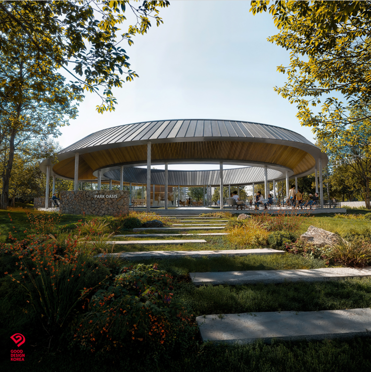 수상작인 파크오아시스(야외음악당)는 '도심 속 정서적 안식처'를 주제로, 바쁜 도시 환경 속에서도 잠시 멈춰 숨을 고를 수 있는 여백의 공간으로 기획됐다.