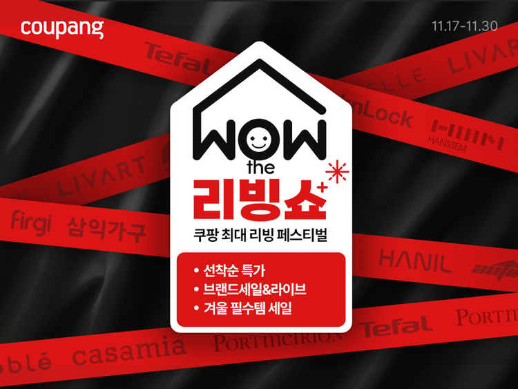 【 청년일보 】 쿠팡은 연말을 맞아 가구, 주방용품, 인테리어 소품 등 수천 가지의 큐레이션된 리빙 아이템을 총망라한 쿠팡 최대 규모 리빙 할인행사 ‘와우더리빙쇼’를 오는 30일까지 진행한다고 18일 밝혔다.