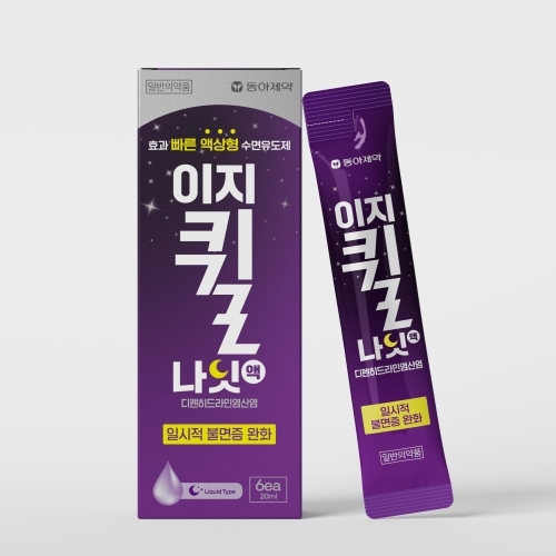 동아제약 관계자는 “국내 첫 액상형 수면유도제인 이지퀼나잇액은 액상 형태로 체내 흡수가 빠르고 파우치 타입으로 휴대가 편리해 수면에 불편함을 겪고 있으신 분들이 언제 어디서든 복용할 수 있다”고 강조했다.