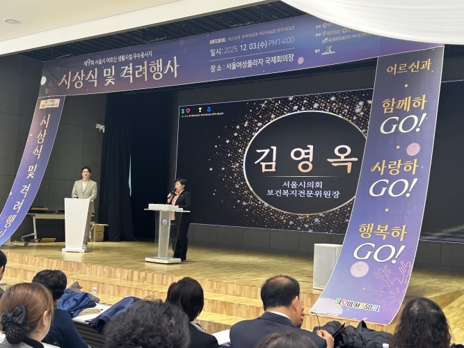 5일 서울특별시의회에 따르면 김 위원장은 지난 3일 서울여성플라자 국제회의장에서 개최된 ‘2025 서울시 어르신 생활시설 우수종사자 시상식’에 참석해 종사자의 현장에서 헌신해 오신 노고를 치하했다.