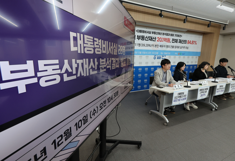 경제정의실천연합(경실련)이 지난 10일 발표한 자료에 따르면, 대통령비서실 소속 고위공직자 28명의 신고 부동산 재산은 1인당 평균 20억3천만원으로 집계됐다.