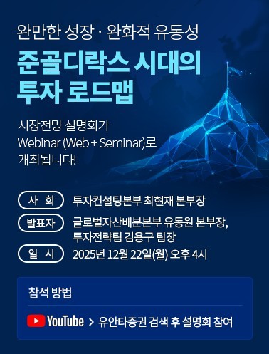 【 청년일보 】 유안타증권은 22일 오후 4시 온라인 투자설명회를 열고 2026년 주식시장 전망과 중장기 투자 전략을 제시한다고 밝혔다.