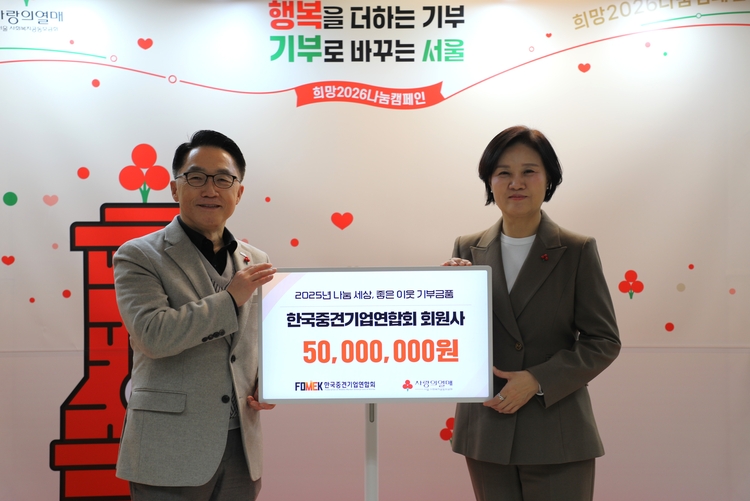 한국중견기업연합회(이하 중견련)은 사회복지공동모금회(사랑의열매)에 5천만원 규모의 '2025년 나눔 세상, 좋은 이웃' 중견기업 기부금과 물품을 전달했다고 23일 밝혔다.
