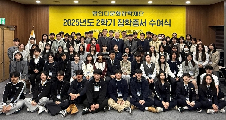 【 청년일보 】 명인제약은 지난 23일 서초구 명인타워에서 ‘명인다문화장학재단’의 2025년도 2학기 장학증서 수여식을 열고 다문화 가정 자녀를 대상으로 장학 증서를 수여했다고 26일 밝혔다.