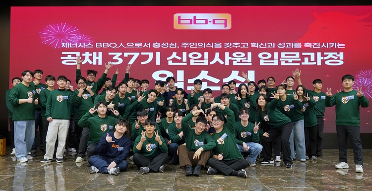 이번 신입사원 공개 채용에는 2천500명 이상 지원했으며, 서류전형과 인공지능(AI) 역량검사, 실무면접 등 엄정한 전형 과정을 거쳐 약 40대 1의 경쟁률을 뚫고 최종 합격자들이 선발됐다. 신입사원들은 BBQ의 교육기관인 치킨대학에 모여 본격적인 '공채 37기 신입사원 입문교육'에 돌입했다.