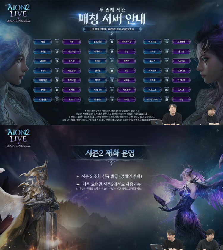 시즌2 서버 매칭은 안정적인 1대1 구도(시엘-지켈 등)로 시작하며, 향후 데이터를 기반으로 다대다 매칭으로 확장해 나갈 계획이다. 아울러 어비스 포인트(AP) 획득 제한을 해제하고 주간 획득 상한을 점진적으로 늘려 후발 주자들도 박탈감 없이 성장할 수 있는 사다리를 마련했다.