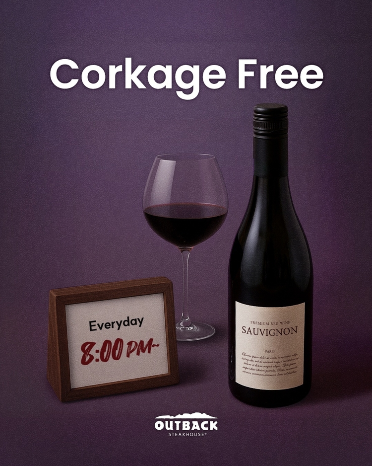 아웃백은 지난해 9월부터 매장 와인 구매 여부와 관계없이 저녁 8시 이후 방문하는 모든 고객에게 콜키지 요금을 받지 않는 '콜키지 프리' 서비스를 도입했다.