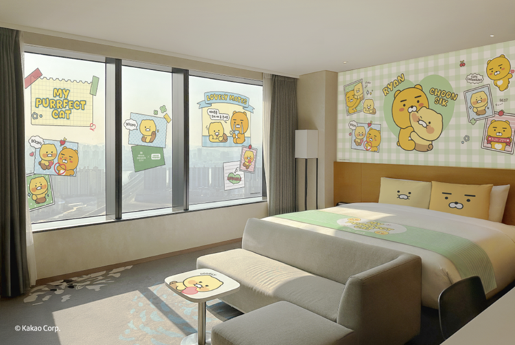 객실은 노보텔 스위트 주니어 스위트 타입을 기반으로 하며, 공간 곳곳에는 라이언과 춘식이의 감성을 담은 인테리어가 적용돼 따뜻하고 아기자기한 분위기를 연출한다. 캐릭터 침구와 소품은 물론, 머무는 내내 아이들이 즐거움을 느낄 수 있도록 세심한 요소를 곳곳에 담았다.