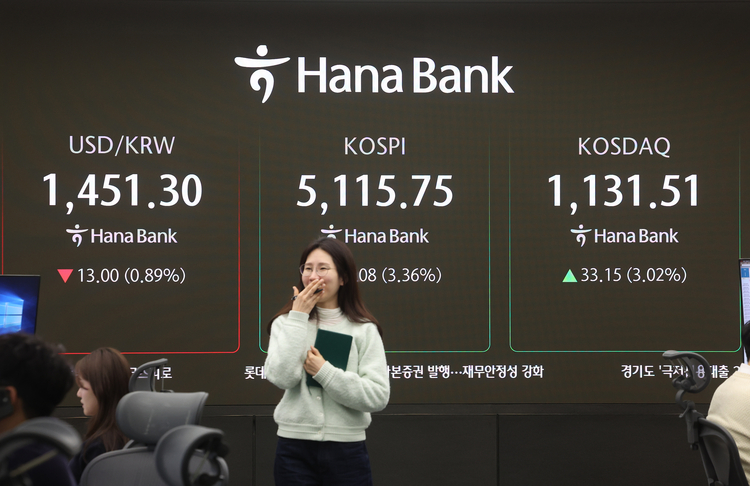 3일 한국거래소에 따르면, 오전 11시 20분 기준 코스피는 전 거래일 대비 233.62포인트(4.72%) 오른 5,183.29을 기록 중이다. 지수는 장 초반 165.14포인트(3.34%) 오른 5,114.81로 출발한 뒤 한때 5,197.87까지 오르며 상승 흐름을 이어갔다.