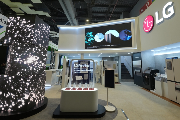 LG전자는 전시관 전면에 총 5개의 퓨로텍 라인업을 내세우고, 이를 적용한 다양한 제품들을 체험할 수 있도록 부스를 조성했다. 세탁기·냉장고·에어컨·청소기·정수기 등 가전을 비롯해 건축자재, 위생용품, 식품포장, 의료장비 등 생활 밀착형 제품군에 퓨로텍이 적용된 사례를 소개했다.