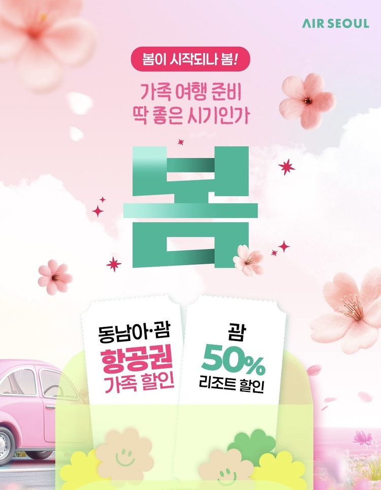 에어서울 관계자는 "가족 여행 수요가 증가하는 봄 시즌을 고려해 전 노선 할인과 인기 휴양지 중심의 추가 혜택을 준비했다"며 "여행 비용 부담을 덜고 보다 여유로운 여행을 즐기시길 바란다"고 말했다.
