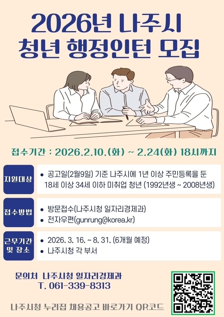 【 청년일보 】 청년들에게 행정 실무 경험과 경력 형성 기회를 제공하기 위해 전남 나주시가 나선다.