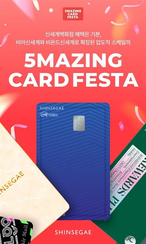 【 청년일보 】 신세계백화점은 내달 2일까지 5개 제휴카드사(씨티/삼성/신한/하나/BC바로)와 '5메이징 카드 페스타'를 열고 풍성한 쇼핑 혜택을 선사한다고 19일 밝혔다.