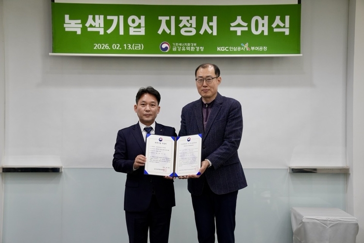 【 청년일보 】 KGC인삼공사는 부여공장이 지난 1월 30일 금강유역환경청으로부터 녹색기업으로 선정됐다고 20일 밝혔다.