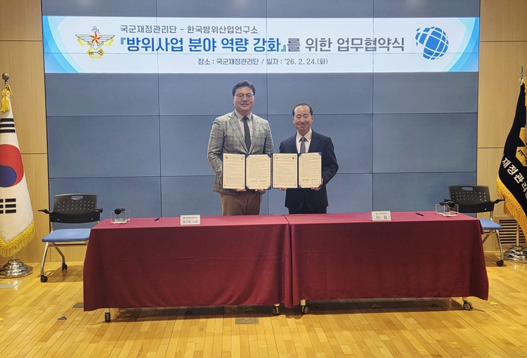 【 청년일보 】 한국방위산업연구소는 국군재정관리단과 전날 국군재정관리단 강당에서 상호 업무협약 양해각서(MOU)를 체결했다고 25일 밝혔다.