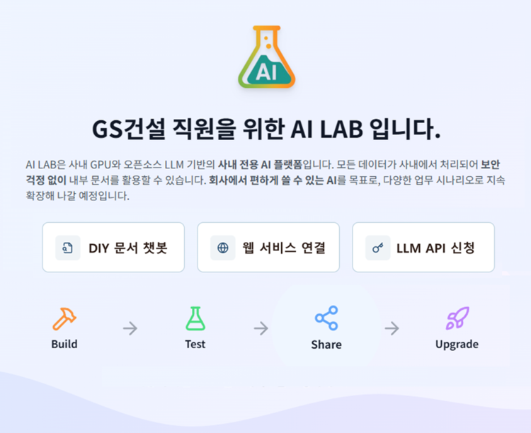 GS건설은 자체 AI 툴인 ‘AI LAB’을 개발해 정식 오픈했다고 10일 밝혔다.