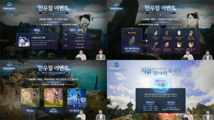 방송 후반부에는 다가오는 만우절을 맞이해 유쾌한 이벤트 소식과 영상이 공개됐다. 소 실장과 김 PD가 직접 아이온2의 마스코트 '슈고족' 인형 탈을 쓴 캐릭터로 변신해 더빙까지 참여한 특별 영상이 공개되어 큰 웃음을 자아냈다.