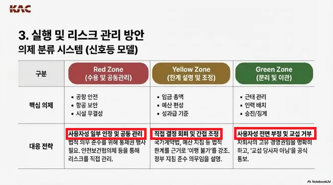 리스크 제거를 위해 내부 규정상 지휘·감독 등의 표현을 협의·요청으로 순화하고, 법적 분쟁에 대비해 사용자성을 부인할 증빙자료를 확보해야 한다는 회피 전략이 제시됐다.