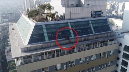구조대원들은 A씨의 휴대전화가 이 건물 상층부에 있는 것으로 확인한 뒤 소방드론을 띄워 건물 외부를 수색했고, 건물 옥상 한쪽에 서 있는 A씨를 포착한 뒤 로프를 이용해 무사히 구조했다.