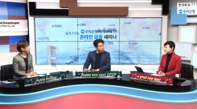 1부에서는 유종우 한국투자증권 리서치센터장과 박형중 우리은행 투자전략팀장이 2021년 국내외 주식시장과 경제환경을 전망하고 유망 금융상품을 소개했다. 김규정 한국투자증권 자산승계연구소장과 안명숙 우리은행 부동산투자지원센터장이 출연한 2부에서는 주택시장을 분석하고 맞춤형 부동산 투자전략을 제시했다.