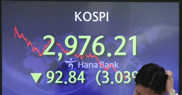 코스피는 29일 전날보다 92.84포인트(3.03%) 내린 2976.21에 장을 마쳤음. 지수는 전장보다 9.68포인트(0.32%) 오른 3078.73에 시작해 장중 1% 넘게 상승했다가 오전 중 하락 반전하며 낙폭을 키웠음.