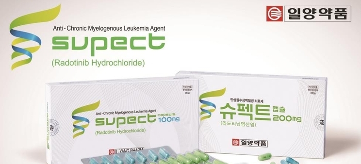 ‘라도티닙’은 일양약품이 자체 개발한 국산 18호 신약 슈펙트의 주성분이다. 국내에서는 백혈병 치료제로 쓰고 있다.