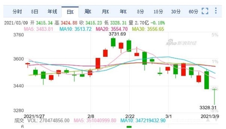 9일 금융투자 업계에 따르면 중국 증시의 벤치마크인 상하이종합지수는 전날 2.30% 급락한 3421.22로 장을 마감했다. 상하이종합지수는 9일에도 장중 3% 가까이 폭락하는 등 계속해서 불안정한 모습을 보이고 있다. 기술주 비중이 높은 선전성분지수도 전날 4% 이상 폭락했다.