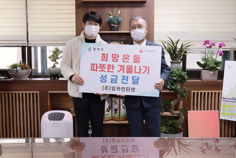 【 청년일보 】 글로벌 ICT 보안솔루션 기업 잉카인터넷이 강서구청과 사랑의열매가 공동 모금하는 '희망온돌 따뜻한 겨울나기' 사업에 300만 원의 성금을 전달했다.