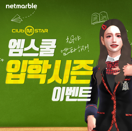 【 청년일보 】 넷마블은 온라인 댄스 게임 '클럽 엠스타'에서 '엠스쿨 입학 시즌 이벤트'를 실시한다고 18일 밝혔다.