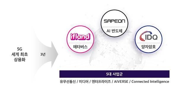 5대 사업군은 ▲5G를 비롯한 '유무선 통신' ▲콘텐츠 중심 '미디어' ▲데이터센터·클라우드·AIoT 등의 분야를 총괄하는 '엔터프라이즈' ▲구독과 메타버스, AI 에이전트의 3대 서비스 중심 'AIVERSE' ▲UAM과 로봇, 자율주행 등 미래사업을 준비하는 '커넥티드 인텔리전스'다.